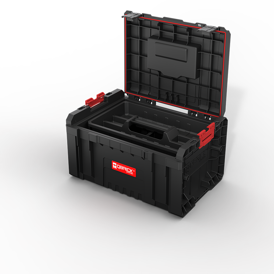 Qbrick System PRO Toolbox ist ein geräumiger, modularer Werkzeugkasten, der standardmäßig über eine sehr umfangreiche Ausstattung verfügt: